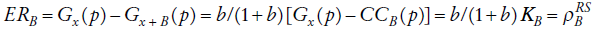 donde se refiere al índice de Reynolds-Smolensky para la transferencia B, y b = B/X es el tamaño de la transferencia. En ausencia de reordenamiento, el es igual al efecto redistributivo: es decir, al cambio entre el Gini del ingreso X antes de la transferencia y el Gini del ingreso después de la transferencia (X + B).12