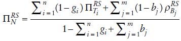 donde es el índice de Reynolds-Smolensky para el sistema fiscal neto con n impuestos y m transferencias. En ausencia de reordenamiento, el índice de Reynolds-Smolensky es igual al efecto redistributivo, es decir, es igual a la diferencia entre el coeficiente de Gini del ingreso X antes de impuestos y transferencias y el coeficiente de Gini del ingreso después de impuestos y transferencias