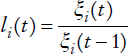 Para ello se utiliza la variable ξi (t) que se define como el número de pensionados que ingresaron al sistema de pensiones en el año i ∈[i, , ], que está determinado por los años que se consideren para el contrato del swap, y que está vivo en el año t. Como se mencionó anteriormente, para evitar la distorsión generada por la contabilización de pensionados entrantes a cada generación se propone utilizar una medida de proporción de sobrevivencia una vez que entraron al grupo, la cual se define como: