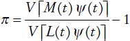 Derivado de la formulación descrita en las ecuaciones (1) a (4) se establecen dos series de longevidad, la primera, un índice L(t) que representa el comportamiento proporcional de la longevidad ex ante, es decir, el índice de longevidad proporcional esperado al inicio del periodo del swap, y segundo, un índice de longevidad proporcional que refleja la experiencia de longevidad ex post M(t), que es una variable aleatoria y es donde se incorpora el riesgo de longevidad, el cual se define al momento de iniciar el contrato del swap como:
