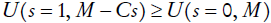 donde s = 1 acepta; s = 0 no acepta; M representa el ingreso del individuo i; y Cs es el costo de participar.