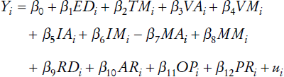 donde Y = Alta tasa de aceptación, ED = Educación, TM = Tamaño del municipio, VA = Votación alta, VM = Votación media, IA = Ingreso alto, IM = Ingreso medio, MA = Marginación alta, MM = Marginación media, RD = Relación de dependencia, AR = Actividad relevante, OP = Oportunidades, PR = Procampo, i = municipio i.
