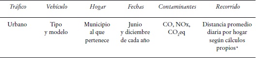Para realizar el análisis se construyó una base de datos con información de 2010, 2012 y 2014 con datos del Módulo de Condiciones Socioeconómicas (MCS) del Instituto Nacional de Estadística, Geografía e Informática (INEGI), para una muestra representativa de 10 582 hogares, con datos de ingreso anual e ingreso per cápita por hogar, al igual que datos sobre la ubicación de éste y el número y modelo de los vehículos que posee. Posteriormente, utilizamos el modelo MOVES-México4 para simular las emisiones en la Zona Metropolitana del Valle de México por tipo de vehículo y modelo (véase el Cuadro 1). Este modelo actualmente es usado por la Secretaría del Medio Ambiente de la Ciudad de México para hacer su inventario de emisiones.