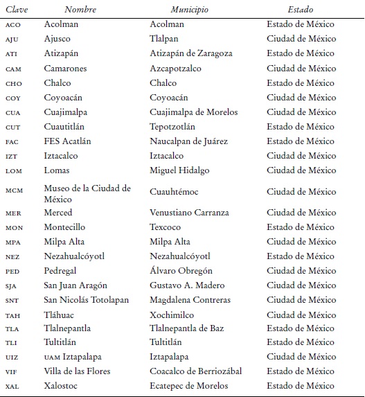 Los datos de contaminación atmosférica que pondera MOVES-México de acuerdo con los parámetros ingresados, provienen de la Sedema.5 La Sedema cuenta con mediciones para un total de 42 estaciones medidoras para la Ciudad de México y el Estado de México.