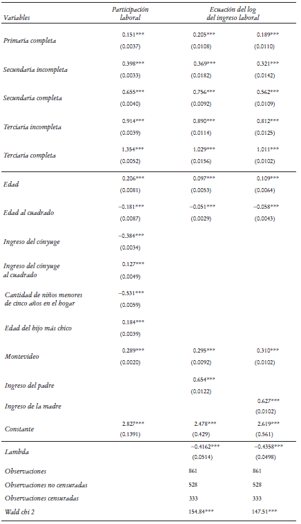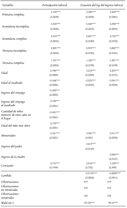Finalmente, la estimación puede resultar sesgada si existe selección en el empleo, debido a que sólo se observa el ingreso laboral para el caso de las personas que están trabajando, lo cual no es una muestra aleatoria, particularmente en el caso de las mujeres (Cervini, 2009). Para corregir este sesgo se aplicará el método propuesto por Heckman (1979) y se estimarán elasticidades distintas por sexo.