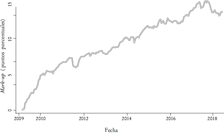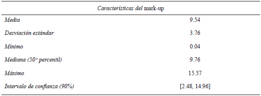 El mark-up promedio hasta mayo de 2018 es de 9.54%. En el Cuadro 4 se muestran algunos indicadores del mark-up.