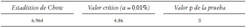 Adicionalmente, para corroborar el resultado, calculamos la prueba Chow. Los resultados se muestran en el Cuadro 3.