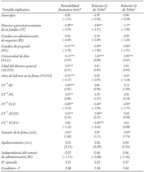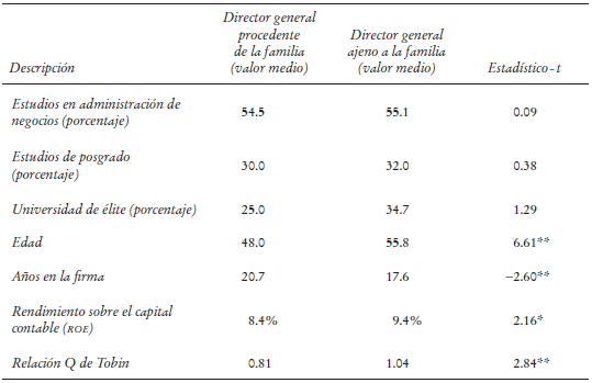 Estos hallazgos permiten concluir que, en el caso de las empresas mexicanas de esta índole, la formación académica del director general provisto de vínculos familiares y la de aquel desprovisto de ellos son equiparables.