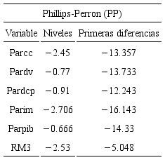 El poder de los test de raíces unitarias es bajo. En consecuencia, contrastamos la robustez de los resultados mediante la aplicación de los test de Phillips-Perron (PP) a las mismas series de datos (Cuadro 3).