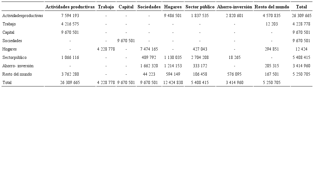 Partiendo de la lógica anterior, de acuerdo con Cardenete y Sancho (2003), la SAM trata de corregir y superar algunas de las limitaciones que se presentan en el uso de la MIP, pues permite agregar todas las transacciones económicas que se producen entre los sectores económicos de un determinado país y, de manera más formal, muestra la mutua interrelación entre la estructura de la producción, los patrones de consumo y la distribución del ingreso; además, permite modelar el efecto de un shock en las variaciones exógenas en la estructura de la producción y en las diferentes instituciones económicas.