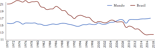 Para comprender los efectos perjudiciales sobre el crecimiento, es necesario analizar las consecuencias de la reprimarización sobre la rentabilidad del capital en el sector industrial. Como esta rentabilidad tiende a disminuir, se está produciendo una desindustrialización. Esta disminución de la rentabilidad prepara la crisis (-3.8% en 2015 y -3.1% en 2016). Esto es lo que pasó en Brasil. La caída de los precios de las materias primas no es el único factor que explica la crisis abierta que ha experimentado este país. Sólo acentuó un fenómeno que ya estaba presente. En otras palabras, los efectos perjudiciales de la reprimarización sobre la rentabilidad de la industria, así como la ausencia de una política industrial significativa se reflejan en una crisis económica.10 Al final, con la reprimarización, sin una política industrial y cambiaria que contrarreste sus efectos negativos, y sin una reforma fiscal, la vulnerabilidad aumenta y las capacidades de rebote disminuyen por el debilitamiento del tejido industrial y la pérdida de peso de los sectores de alta tecnología, lo que explica la tendencia al estancamiento económico a largo plazo (Salama, 2016, 2019a y b, 2020a).