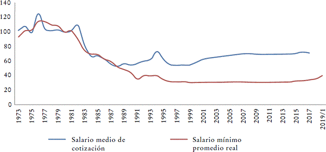 Para superar la crisis causada por una deuda externa que se había vuelto insostenible, el gobierno mexicano liberalizó todos sus mercados en la década de los ochenta. La apertura exterior aumentó bruscamente en un momento cuando el tejido industrial de México estaba muy debilitado por la crisis de la deuda y el fin de diversas formas de apoyo a la industria. México se convirtió así en el más abierto de los grandes países latinoamericanos al comercio internacional, con la particularidad de que el salario real medio se ha mantenido prácticamente estable desde 1993.