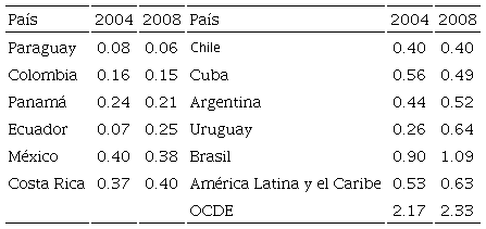 México se ha especializado en la exportación de productos manufacturados relativamente sofisticados, más que los exportados por otros países de América Latina. Lógicamente, estas exportaciones deberían haber permitido una inserción positiva en la división internacional del trabajo, que es una fuente de mayor crecimiento. Esto no sucedió. De hecho, la sofisticación de los bienes exportados es sólo aparente. Hay una ilusión óptica que se desvanece cuando consideramos no tanto la exportación de bienes sino la exportación del valor añadido producido en el país. La mayoría de las exportaciones de bienes industriales -con la notable excepción del sector automovilístico, en el que la integración es mayor- está constituida por bienes ensamblados. Por lo tanto, hay pocos efectos de encadenamiento y el grado de integración nacional se reduce a las adquisiciones. Los bienes exportados son sólo aparentemente sofisticados, lo que se confirma con los datos sobre el esfuerzo de investigación y desarrollo en relación con el PIB de América Latina que hemos visto.