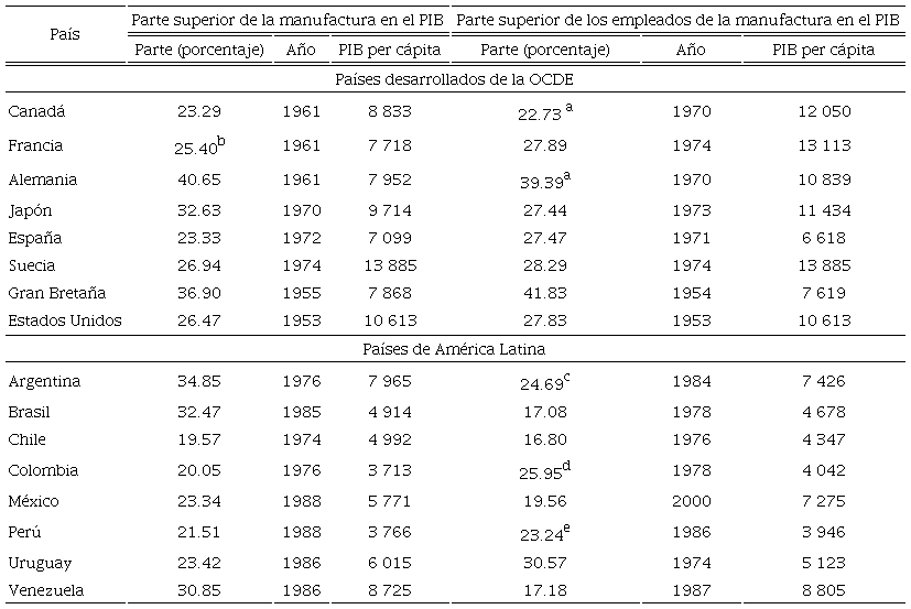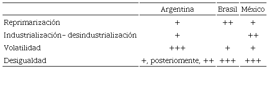 En México la desindustrialización concierne a las empresas orientadas a satisfacer la demanda interna. Por el contrario, los bienes industriales están creciendo a medida que se intensifica la demanda de los Estados Unidos y Canadá. Por lo tanto, hay un doble proceso: desindustrialización e industrialización. Existe una clara separación entre los mercados internos y externos, porque no hay ningún vínculo entre ambos, excepto en parte para el sector de los vehículos de motor. En Argentina los dos procesos, desindustrialización e industrialización, no han sido concomitantes. La desindustrialización es más extensa que en otros países, pero a una fase de des industrialización le siguió una relativamente breve de reindustrialización cuando se superó la crisis del Plan de Convertibilidad a principios del decenio del 2000, y luego vino una fase de desindustrialización nuevamente. En Brasil la desindustrialización es irregular: relativamente pronunciada de 1985 a 1996, después se ralentizó y luego aumentó otra vez, pero en forma más atenuada.
