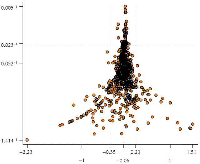 El método consiste en caracterizar cada estudio con ayuda de dos parámetros: el primero es evidentemente el valor del coeficiente estimado, por ejemplo, el que nos dice cuánto varía el empleo por un aumento concedido al salario mínimo; el segundo es la precisión de la estimación medida por la inversa de su desviación estándar: cuanto más grande sea el intervalo de confianza del coeficiente, su precisión será menor. En ese caso, cada estudio puede estar representado por un punto. El conjunto de esos puntos nos da una curva en forma de embudo invertido (d’entonnoir renversé): cuanto más se aleje un punto del valor medio de las observaciones, tanta más precisión pierden las observaciones.