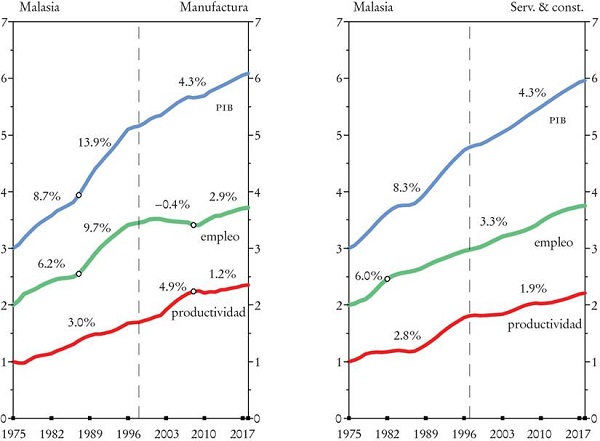 Sin embargo, después de la crisis financiera de 1997, en estos países el crecimiento de la productividad se desaceleró, algo que se agudizó en el periodo posterior a la crisis financiera global de 2008. Estos hechos estilizados refuerzan la idea del papel especial de las manufacturas en el desarrollo, en particular el de las manufacturas para las exportaciones -proceso que fue analizado en detalle por Nicholas Kaldor en los años sesenta-. Desde la revolución industrial, la manufactura ha sido el mejor camino para pasar de la pobreza a la abundancia; los neoliberales intentaron reinventar la rueda, pero fue en vano.
