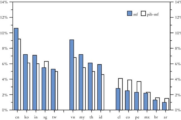 La cifra también confirma que, a pesar de más de 40 años de progreso excepcionalmente rápido, China y los NIC-2 siguen muy alejados de la frontera tecnológica, pues comenzaron su periodo de rápido crecimiento económico con niveles extremadamente bajos de producción por persona.