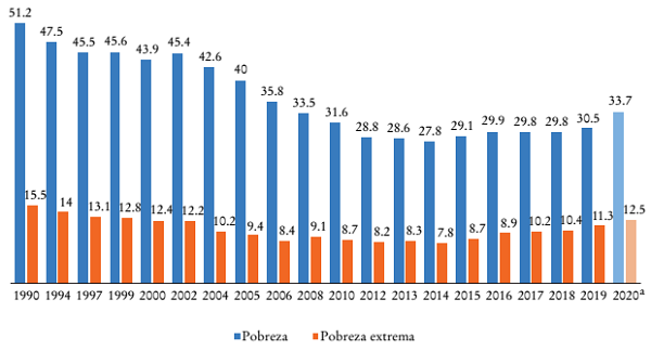 En un marco en el que la igualdad es el horizonte estratégico del desarrollo inclusivo, las propuestas de política social adquieren mayor importancia y su foco se amplía de la erradicación de la pobreza y la pobreza extrema -un objetivo aún distante en la región (véase Gráfica 1)- a la reducción de las múltiples dimensiones de la desigualdad, así como a la necesidad de proveer protección social a amplios sectores de la población de América Latina y el Caribe que viven en condiciones de vulnerabilidad. Todo esto en un contexto en el que las propuestas de política social deben enfrentarse a grandes tendencias, como el envejecimiento poblacional, los cambios en el mundo del trabajo y la mayor frecuencia de los desastres relacionados con fenómenos naturales. En particular, la pandemia de Covid-19 y la crisis prolongada en la región han evidenciado y exacerbado las desigualdades, así como el malestar social (CEPAL, 2021c). En este contexto, el llamado a construir sistemas universales, integrales y sostenibles de protección social y el Estado de bienestar se hace más urgente que nunca.
