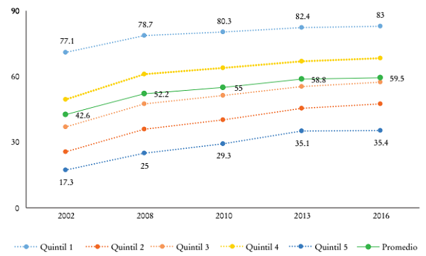 Las desigualdades también se extienden a otras dimensiones, como la educación, el trabajo, la salud, las pensiones, la infraestructura básica (agua, saneamiento, electricidad) y las nuevas tecnologías. Aunque en las últimas décadas la región ha avanzado en las diferentes dimensiones de la inclusión social, es preocupante que persistan profundas segmentaciones de la cobertura y la suficiencia de las prestaciones, las cuales también se evidencian en las grandes diferencias en la calidad de los servicios a los que acceden los diferentes grupos poblacionales, así como en sus posibilidades de inclusión laboral y acceso al trabajo decente (CEPAL, 2019a).