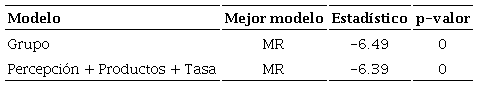 donde LOLS (.) y LMR (.) son las funciones de verosimilitud de un modelo de regresión por mínimos cuadrados ordinales (OLS) y un modelo de regresión sobre la mediana (MR), respectivamente. El subíndice i indica que la i-ésima observación se excluye de la muestra usada para estimar los coeficientes de la regresión (valores CVLL, cross-validated log-likelihood). La prueba de diferencia de medias por validación cruzada -CVDM (cross-validated difference in means)- es una prueba de la hipótesis E[δ(cv) ] = 0. Si la media de los valores CVLL para OLS es estadísticamente más grande que la media de los valores CVLL para MR, entonces es más probable que los datos provengan del modelo de verosimilitud normal, y se selecciona OLS como el estimador de mejor ajuste, y viceversa. El punto de partida para la prueba CVDM es una prueba t convencional aplicada a δ(cv).