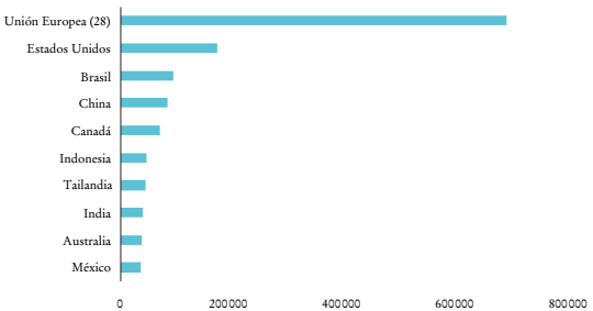La profundización de estos problemas sociales ha ocasionado una elevada migración de la población rural como un mecanismo para diversificar y asegurar un ingreso en los hogares rurales mexicanos. Este flujo migratorio se ha triplicado desde 199023 y se ha dirigido principalmente hacia los Estados Unidos -que en 2017 como destino representaba 98% de la migración mexicana- (CEDRSSA, 2018a). Así, en 2019 México se sitúa como el segundo país con más migrantes en el mundo (4.3%) y como el tercer país receptor de remesas, con 5.4% del total de flujos globales.