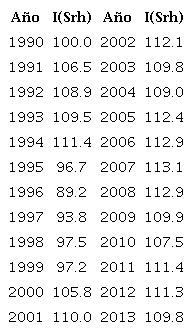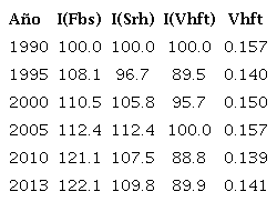 En cuarto lugar, el índice de la productividad del sector de bienes-salario se estimó al sumar cada índice parcial multiplicado por su ponderador.