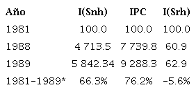 100% del aumento total en la tasa de plusvalía. Conviene agregar que la fuerte caída en los salarios reales descansó principalmente en las elevadas tasas de inflación experimentadas durante los años ochenta, cuando la inflación anual oscilaba en cerca de 76.2% (véase el Cuadro 2).