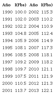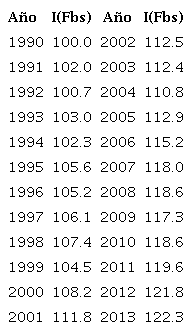 Segunda. La siguiente aproximación para estimar la evolución de la productividad en bienes-salario se realizó mediante índices parciales de productividad y ponderados según el peso relativo del gasto de consumo obrero. En estudios como Isaac y Valenzuela (1999) se realiza dicho ejercicio, pero para un periodo anterior.