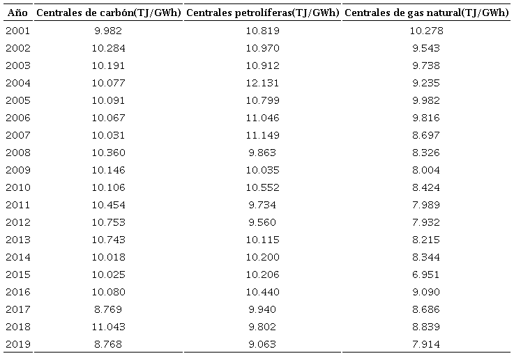 Ʃ(Fit/EPit) = eficiencia energética en la generación de electricidad, la cual mide el cociente de la suma de las entradas de energía de los diferentes combustibles o energéticos (renovables y no renovables) a las centrales eléctricas (medidas en terajoules o TJ) y la suma de electricidad producida por cada una de estas centrales (medida en GWh) en el año t.