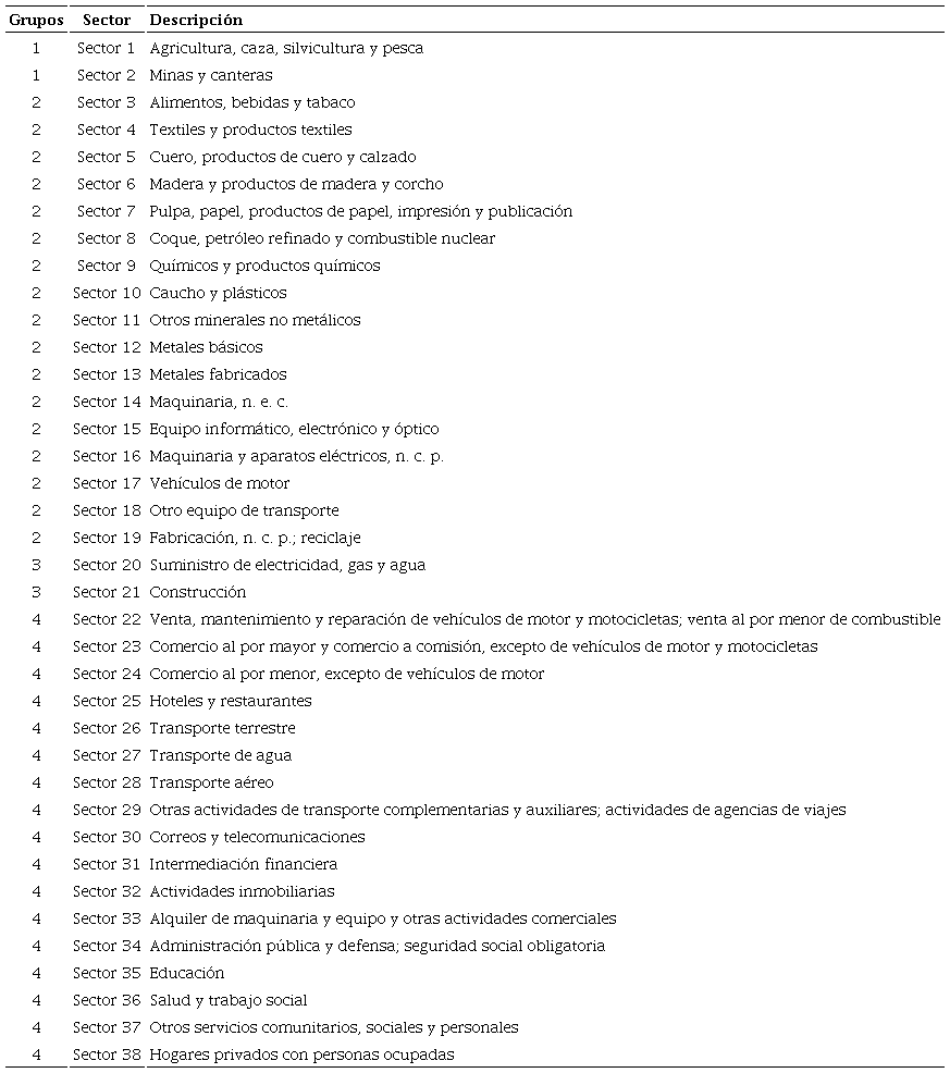 Las MRIO del ADB que incluyen países de Latinoamérica desagregan la producción en 35 y 38 sectores, y cubren a 71 economías (además de los grupos resto de AL y resto del mundo). En cuanto a AL, se incluyen los siguientes países: Argentina, Bolivia, Brasil, Chile, Colombia, Ecuador, México, Paraguay, Perú, Uruguay, Venezuela y un grupo denominado “resto de América Latina”, que incluye a Costa Rica, República Dominicana, El Salvador, Guatemala, Honduras, Nicaragua y Panamá. La información cubre 2007-2017 y la estructura de las MIP presenta por separado los insumos importados de aquellos de origen doméstico de acuerdo con sus usos interindustriales, es decir, se trata de MIP no competitivas. Conviene señalar que una de las ventajas de las MRIO del ADB es que incluyen más países latinoamericanos que en otras matrices mundiales o multirregionales, como las de la WIOD o la OCDE. Por ejemplo, la versión más reciente de las MRIO de la OCDE (que en todas sus versiones incorpora a más países de Latinoamérica que la WIOD) sólo incluye a Argentina, Brasil, Chile, Colombia, Costa Rica, México y Perú. Además, como se menciona anteriormente, las MRIO del ADB son fruto del trabajo conjunto de la CEPAL, la CESPAP y el propio ADB. Por otra parte, en términos de los sectores de actividad, las MRIO del ADB desagregan menos sectores comparados con los 45 de la versión más reciente de la OCDE o los 56 de la WIOD. Una limitación adicional de las MRIO del ADB se refiere al periodo que cubre 2007-2017, que es menor al de las correspondientes a las de la versión más reciente de la OCDE, que va de 1995 a 2018.