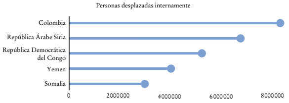 En el registro de datos de los indicadores de desarrollo del Banco Mundial se evidencia el fenómeno de desplazamiento forzado a causa de la confrontación armada y los desplazamientos por desastres naturales. La población colombiana que habitaba en los territorios en los cuales avanzó la locomotora minero-energética padeció de exterminio y empobrecimiento, con cifras anuales sostenidas entre 5 y 7 millones de desplazados internos en el territorio colombiano (Banco Mundial, 2022).