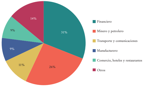 Durante 2010-2018 puede evidenciarse una leve diversificación de la IED donde el sector petrolero y el de explotación de minas y canteras concentran 40.53%, frente a 13.76% del sector de industrias manufactureras, y a 1.35% del de agricultura. La gran diferencia entre estos periodos con el último gobierno nacional 2018-2022 es el flujo de IED en el sector financiero, el cual termina con 23.14% de la inversión total, considerando que había tenido 9.09% durante 2002-2010 y 14.51% en 2010-2018.