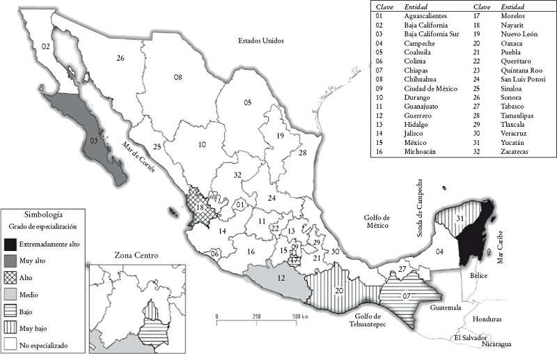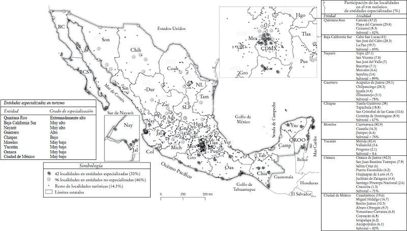 Cabe aclarar que la distinción entre las economías especializadas en turismo y aquellas que no lo son es fundamental para comprender su funcionamiento e identificar sus potencialidades y debilidades, así como su posible aprovechamiento mediante las políticas de desarrollo económico turístico. Las economías especializadas en turismo se caracterizan porque su base es propiamente la actividad turística y el resto de las actividades en gran parte son complementarias y conexas a ella. Por su parte, para las economías en las que es importante la actividad turística, incluso a nivel nacional, pero no están especializadas en esa actividad, el turismo es parte de la actividad económica que se lleva a cabo en dichos sitios; no obstante, su dinámica económica en conjunto no se determina por el turismo, como en el caso de las especializadas.