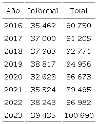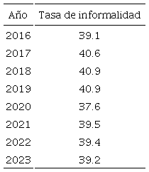 Generalmente caracterizada por el establecimiento de relaciones entre capital y trabajo no ancladas en un contrato firmado entre empleador y empleado, la informalidad es una característica inherente a los mercados de trabajo de los países capitalistas, pero es más prominente en las regiones periféricas y subdesarrolladas, por lo que en algunos de estos países adquiere un carácter estructural en sus relaciones económicas y sociales. Datos de la Comisión Económica para América Latina y el Caribe (CEPAL)1 indican que desde principios de siglo XXI la informalidad siempre ha representado una fracción cercana a 50% de la clase trabajadora en el conjunto de la región. Un documento de la Organización Internacional del Trabajo (OIT, 2023) señala que entre 2022 y 2023 la tasa de informalidad pasará de 49 a 48%, y se concentrará siempre en los grupos más vulnerables, lo que indica que la recuperación de la actividad económica y de los niveles de empleo no ha tenido un impacto significativo en las condiciones de formalización de la clase trabajadora.