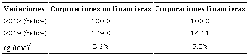 Otro modo de ver el problema se muestra en el Cuadro 3. Aquí se compara la evolución del valor agregado bruto (VAB) de las corporaciones no financieras (CNF) con la de las corporaciones financieras (CF).