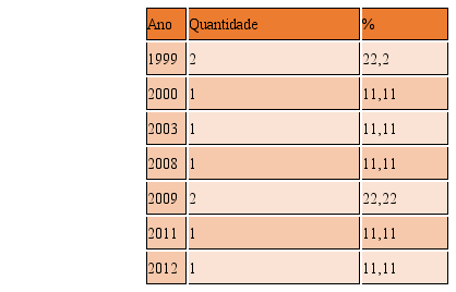 A segunda questão (tabela 1) sobre a produção acadêmica em relação ao tempo constatou que a primeira pesquisa sobre a secularização foi concluída após vinte e um anos da institucionalização das Ciências da Religião no Brasil, de modo tardio, já que nesse mesmo ano Peter Berger (2001) voltou atrás em suas considerações sobre a secularização, além do fato de que temas como dessecularização, retorno do sagrado e reencantamento do mundo já estavam em pauta.