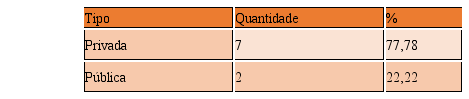 A oitava questão (tabela 7) analisou a distribuição da pesquisa por tipo de instituição. Há predominância das instituições privadas que respondem por 77,78% da produção da produção acadêmica sobre o tema da secularização. Já as instituições públicas, respondem por 22,22%.