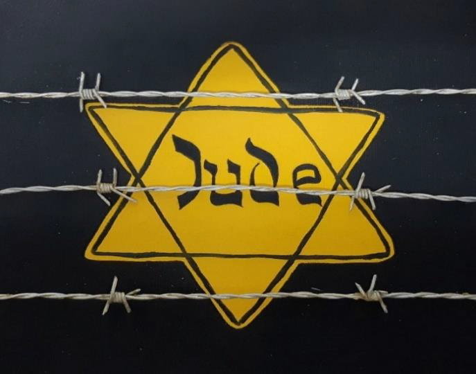 Na descrição de Frankl (2010), o homem é um ser que decide. Nesse instante emerge o espiritual que se encontra latente no invólucro do psicofísico. Quais foram os indicativos desse movimento de resistência do espírito em uma condição subumana? Nas representações plásticas do livro Em busca de sentido, encontra-se esse movimento de transcendência do espírito humano. A obra representada na Figura 1 recorre à Estrela de Davi, que foi a identificação imposta pelo sistema nazista para os judeus.