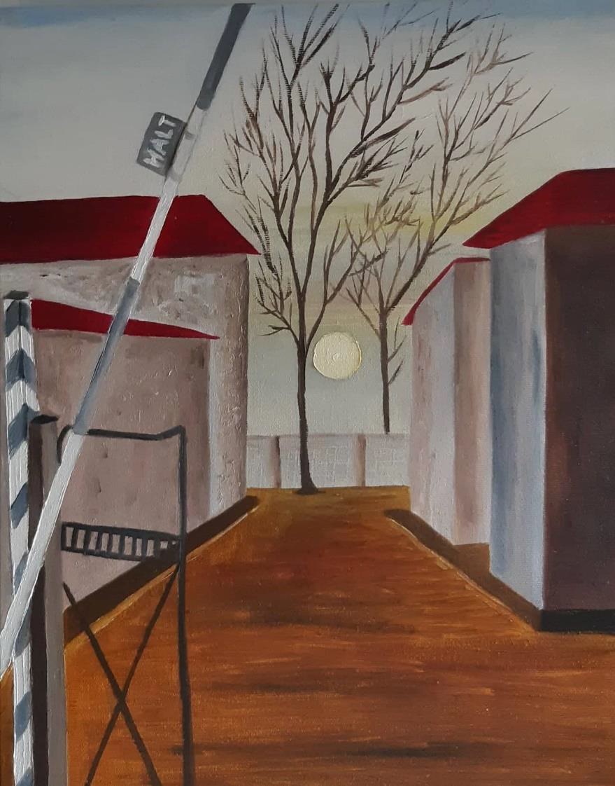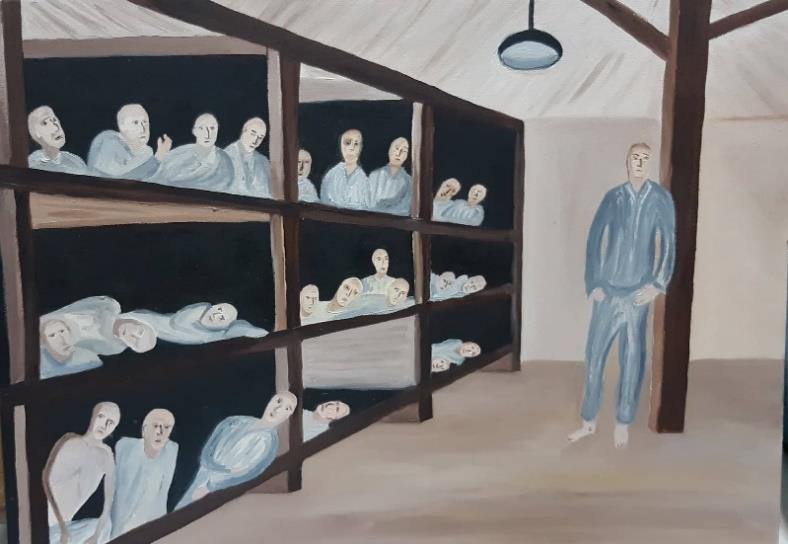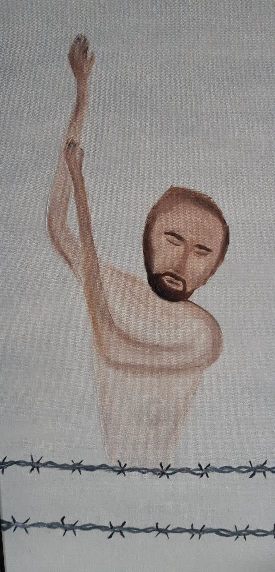 Nesta obra, encontra-se uma cerca de arame farpado, sugerindo o aprisionamento do espírito humano. Não obstante, a estrela de cor amarela parece protestar, pois não é possível aprisionar a dimensão espiritual. A perspectiva de figura e fundo sugerem que é possível ainda se posicionar, sobretudo quando o ser humano se encontra cerceado em sua liberdade de ir e vir. Ao fundo, encontra-se a parte escura, o que bem pode representar o temor dos prisioneiros, sobretudo o de não ser digno do seu destino sofrido.
