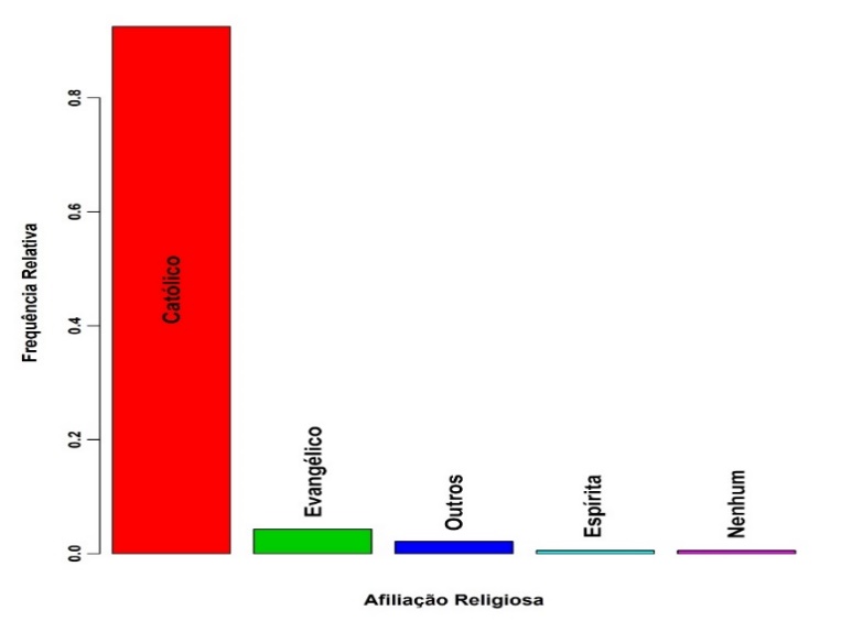 No item afiliação religiosa (Gráfico 2), cento e setenta e três pessoas idosas entrevistadas declararam-se como católicas (92,51%). De modo mais específico, a administração das dezoito ILPIs é conduzida por: (1) Pastor Evangélico; (1) Espírita, (7) profissionais da saúde – enfermeiras e (9) congregações da Igreja Católica.
