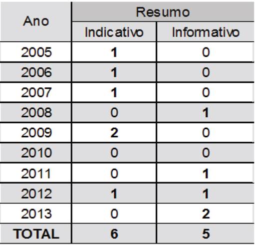 Dados sistematizados pelo autor.Resumos (Indicativo e Informativo)