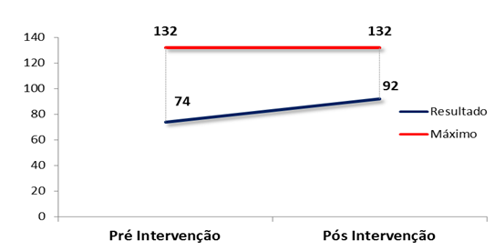 Como mostra a Figura 1, a intervenção influenciou positivamente no desenvolvimento da criança, de modo geral, pois obteve 92 pontos na observação após a intervenção, dezoito a mais que no período anterior à intervenção.