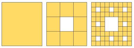 Alguns fractais estão relacionados com as formas geométricas estudadas no ensino fundamental: o Conjunto de Cantor e a Curva de Peano são construídos a partir de segmentos de reta; um triângulo equilátero fundamenta a construção da Ilha de Koch; o Tapete de Sierpinski se relaciona com o quadrado e será enfocado neste artigo.
