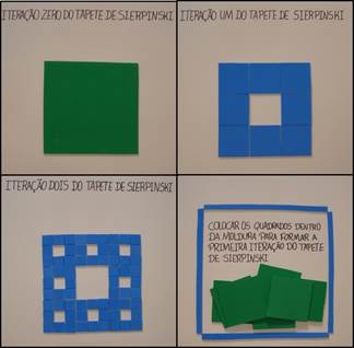 A figura 2 mostra as maquetes das primeiras iterações do fractal Tapete de Sierpinski e o material usado para a avaliação.