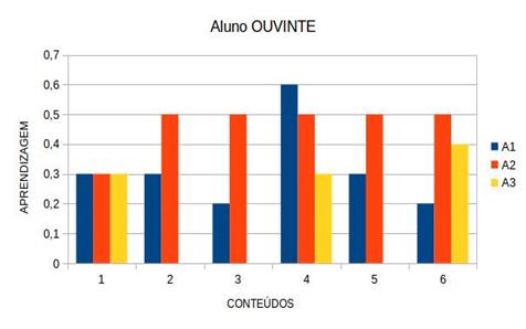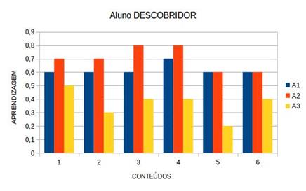 É possível perceber, através dos gráficos, que o método de aluno descobridor possui, para dois alunos, maior eficácia, na maioria dos conteúdos, enquanto o método de aluno ouvinte não permitiu aprendizagem plena para qualquer dos alunos, em nenhum dos conteúdos trabalhados, exceto no conteúdo 4 para o aluno A1.