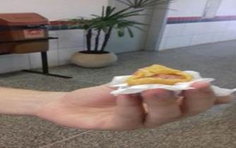O aluno Thiago, no ano de 2016, quando realizamos a entrevista, o mesmo não havia sido contemplado com nenhum tipo de auxílio financeiro e dentre as fotografias que tirou, escolheu como uma foto de que menos gostou a foto de uma coxinha (Figura 3). Na entrevista sobre as fotos, ele explicou que na verdade a foto representava algo de que não gostava, pois não tinha dinheiro no momento para comprar uma refeição, uma vez que no ano da entrevista o aluno não havia sido contemplado com nenhum tipo de bolsa ou auxílio. Podemos entender que o auxílio financeiro por parte da instituição contribui para o bem-estar dos alunos, que no caso do aluno Thiago consistia na sua alimentação durante o período escolar.