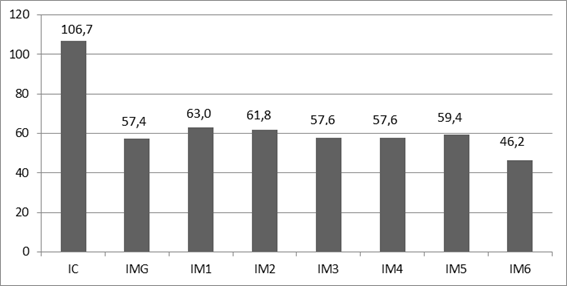 Os resultados foram obtidos por meio do cálculo do quociente motor geral (QMG), que é realizado com base na divisão da idade motora geral (IMG) pela idade cronológica (IC) e multiplicado por cem (QMG = IMG/IC x 100), obtendo uma pontuação que equivale à função motora geral. Com base nessa pontuação os quocientes motores são classificados em muito superior (130 ou mais), superior (120-129), normal alto (110-119), normal médio (90-109), normal baixo (80-89), inferior (70-79) e muito inferior (69 ou menos).