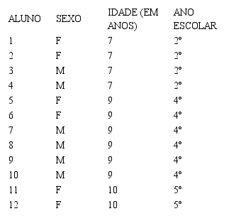 Alunos previamente identificados e confirmados com AH/SD por Mendonça (2015) – e que por meio de questionário realizado pela pesquisadora demonstraram interesse no aprendizado da língua inglesa – foram convidados e aceitaram participar da pesquisa, a qual contou com seis participantes, três meninas e três meninos, de 7 a 10 anos, do 2º ao 5º ano. Após o aceite desse grupo, a escola na qual os alunos estudavam auxiliou na seleção de outros seis alunos sem AH/SD – também de acordo com a pesquisa de Mendonça (2015) – com o objetivo de estabelecer um grupo homogêneo às características básicas do grupo com AH/SD quanto ao sexo, à idade e ao ano escolar. A Tabela 1 apresenta maiores detalhamentos dos dois grupos.