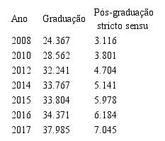 Estes números de ingresso de estudantes surdos na UFBA são realmente muito tímidos se comparados ao número total de matrículas em cursos de Graduação e Pós-graduação stricto sensu na UFBA entre 2008 e 2018, conforme atestam os dados abaixo: