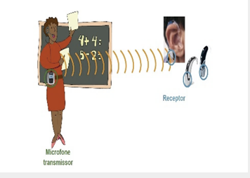 Em muitas situações, a distância entre o falante e o sujeito, o ruído e o eco, podem causar grande dificuldade para o entendimento da fala. O Sistema de Frequência Modulada (FM) é um dispositivo tecnológico que objetiva eliminar o efeito da distância (SIAGH; TANAMATI; FERRARI, 2015). Veja na imagem 7 a seguir.
